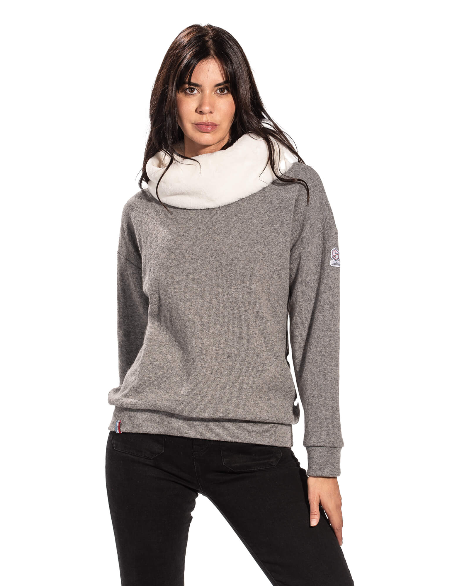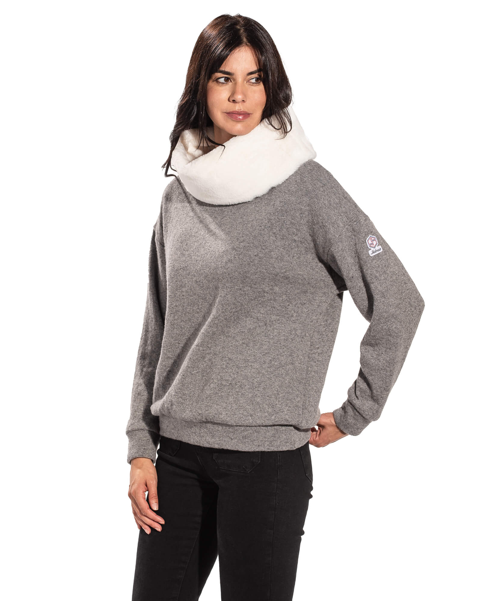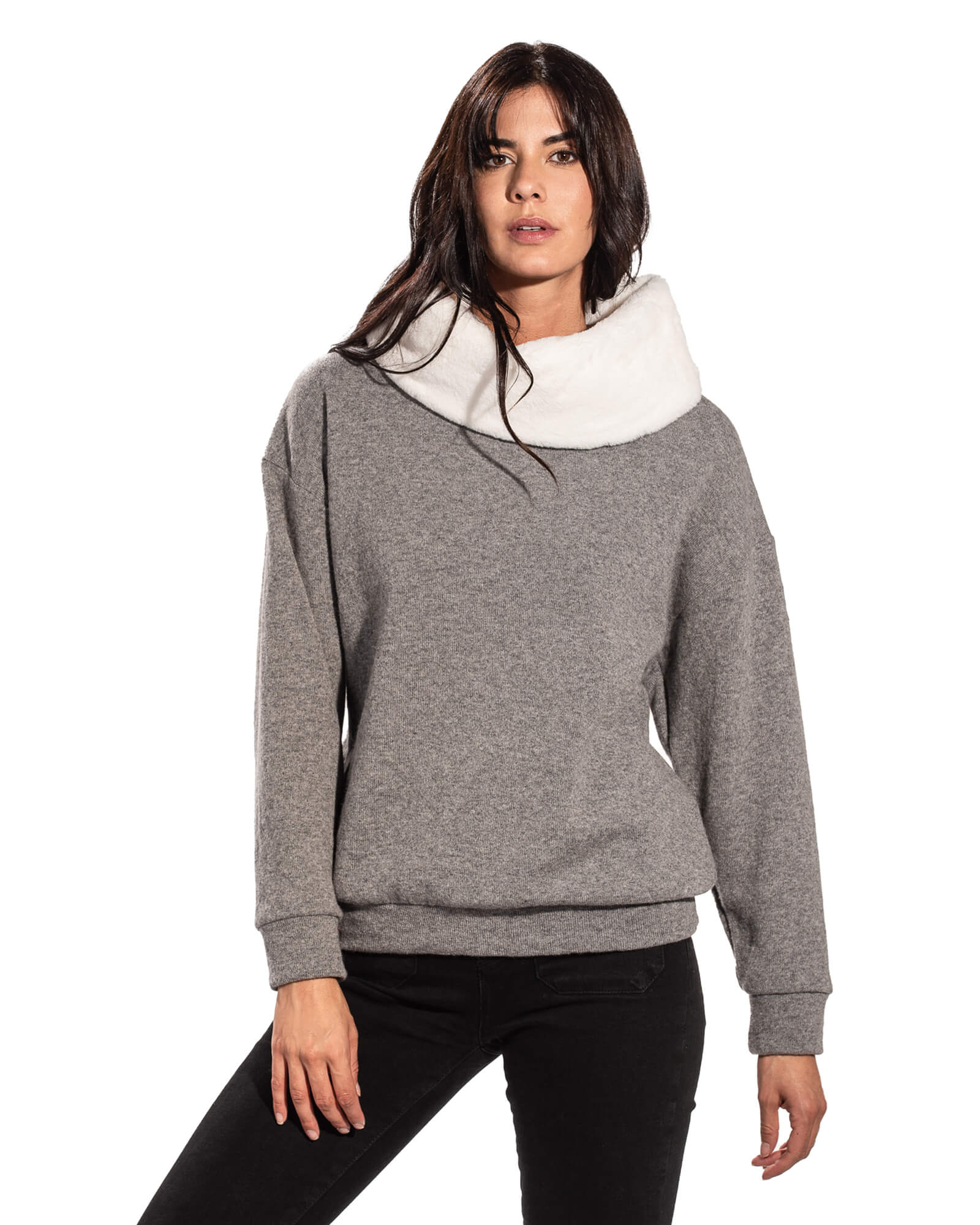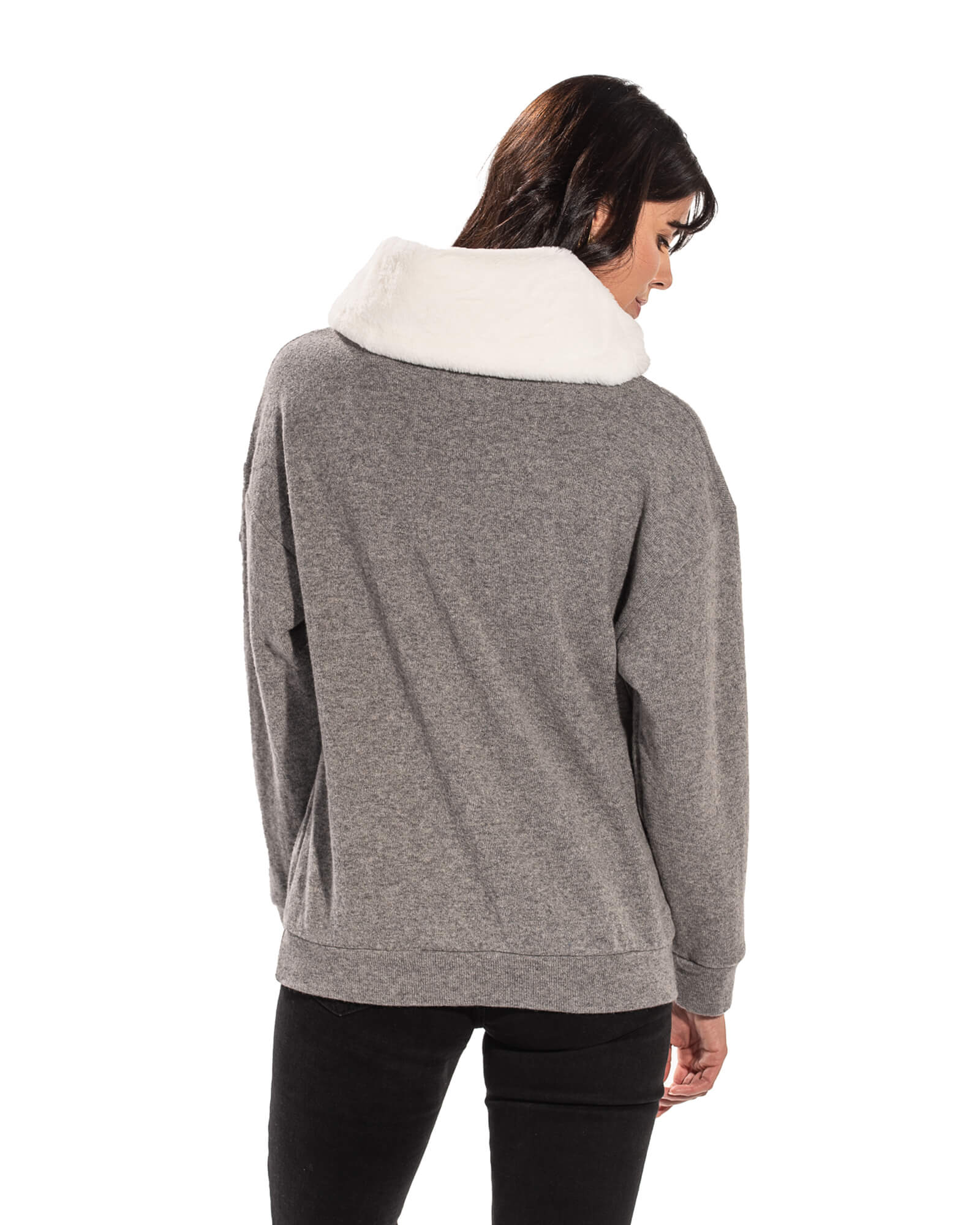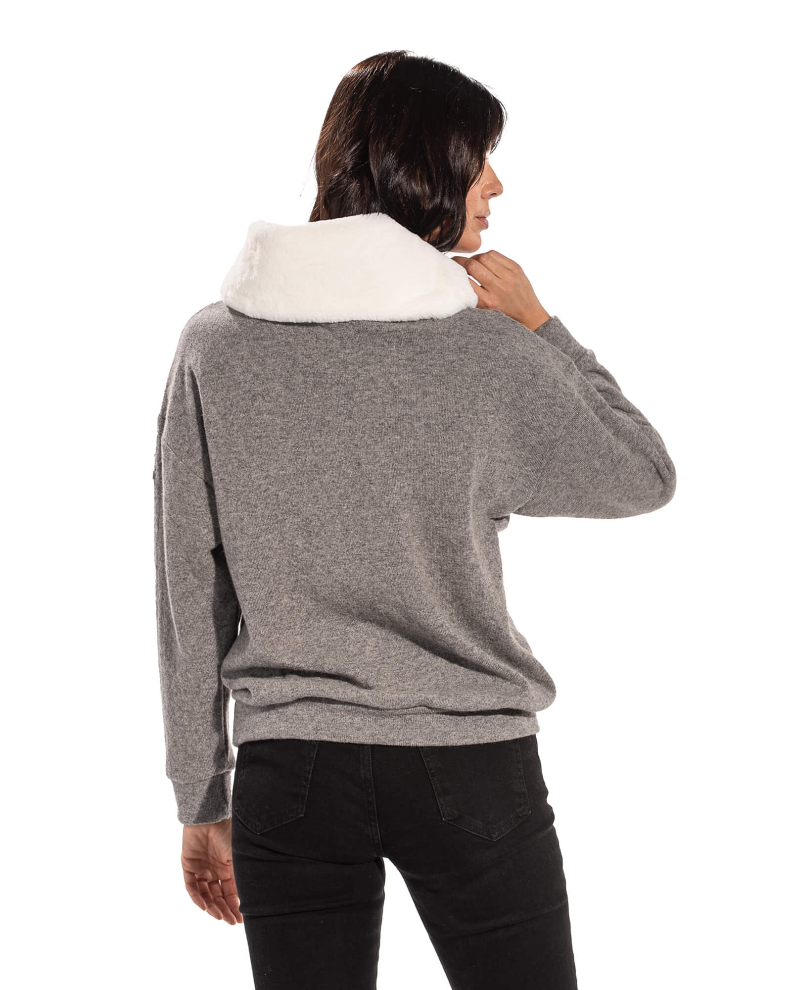Oversized sweater in fine knit and extravagant collar effect fur.