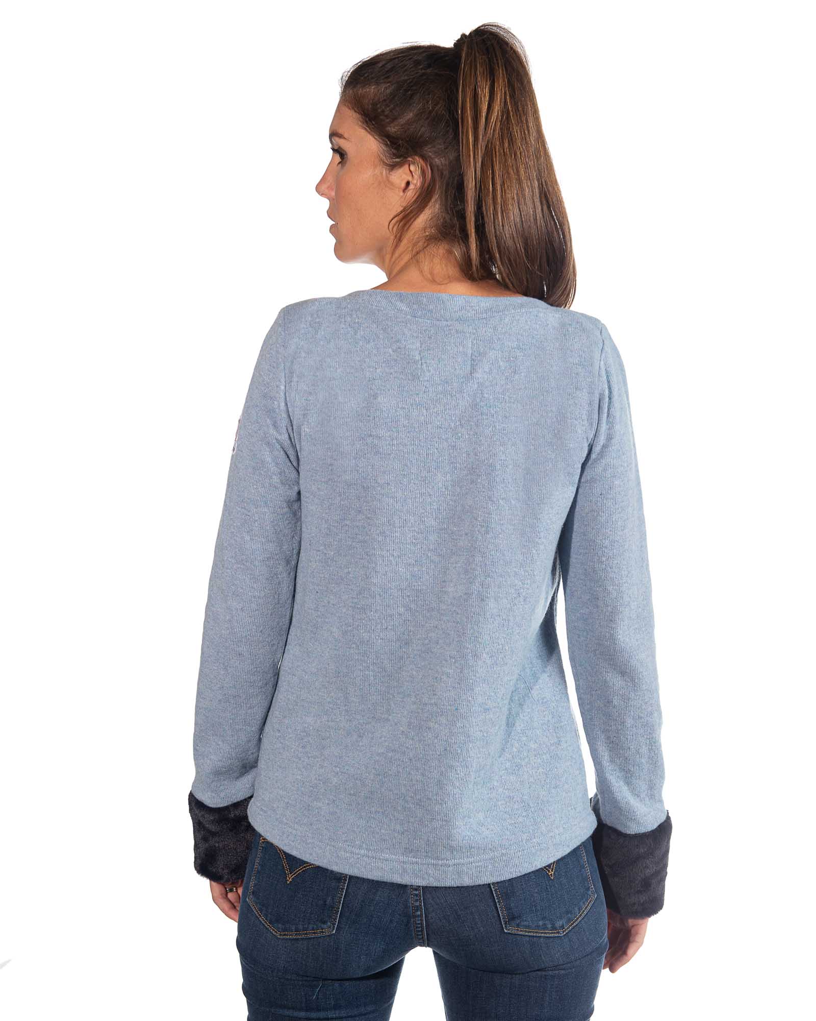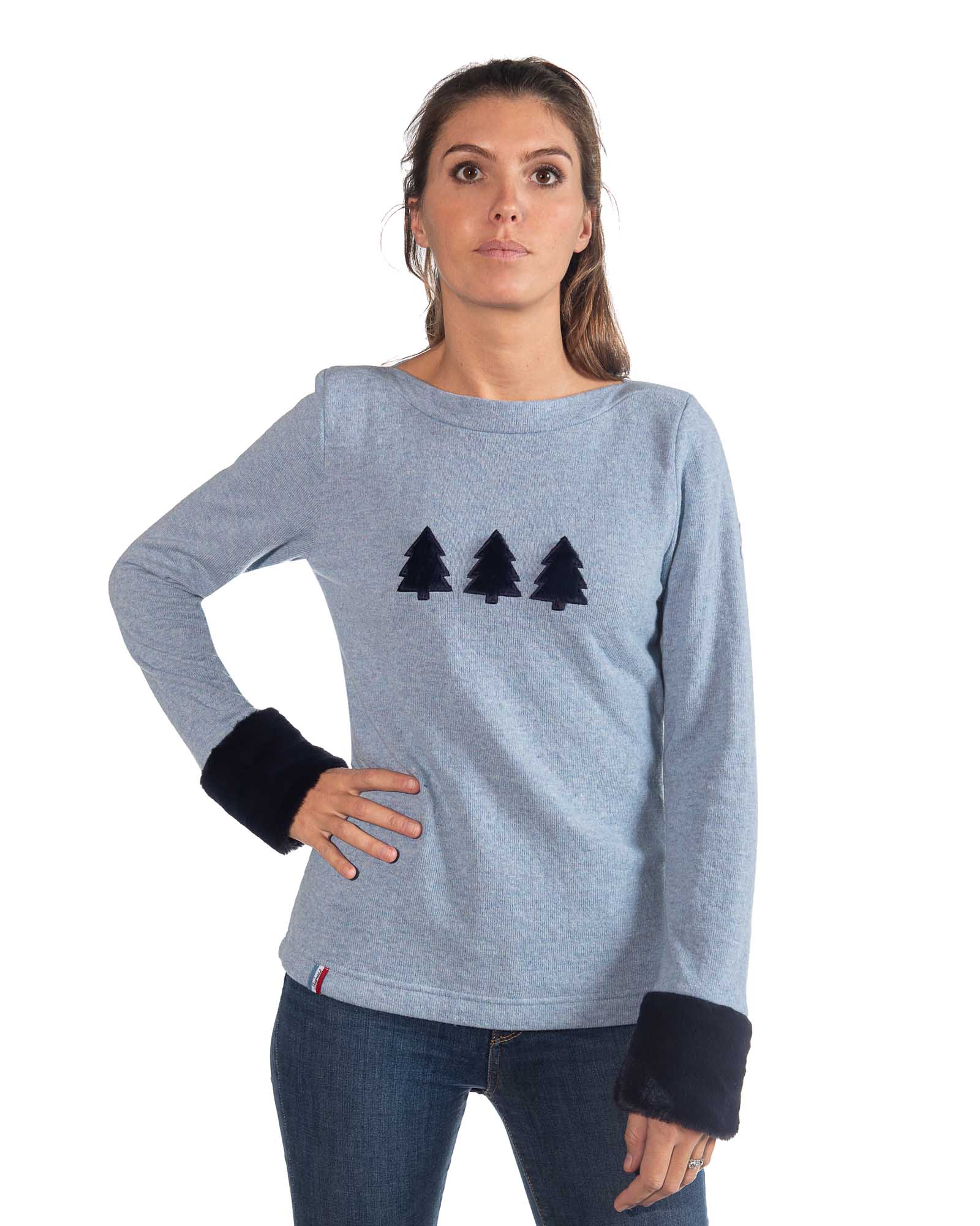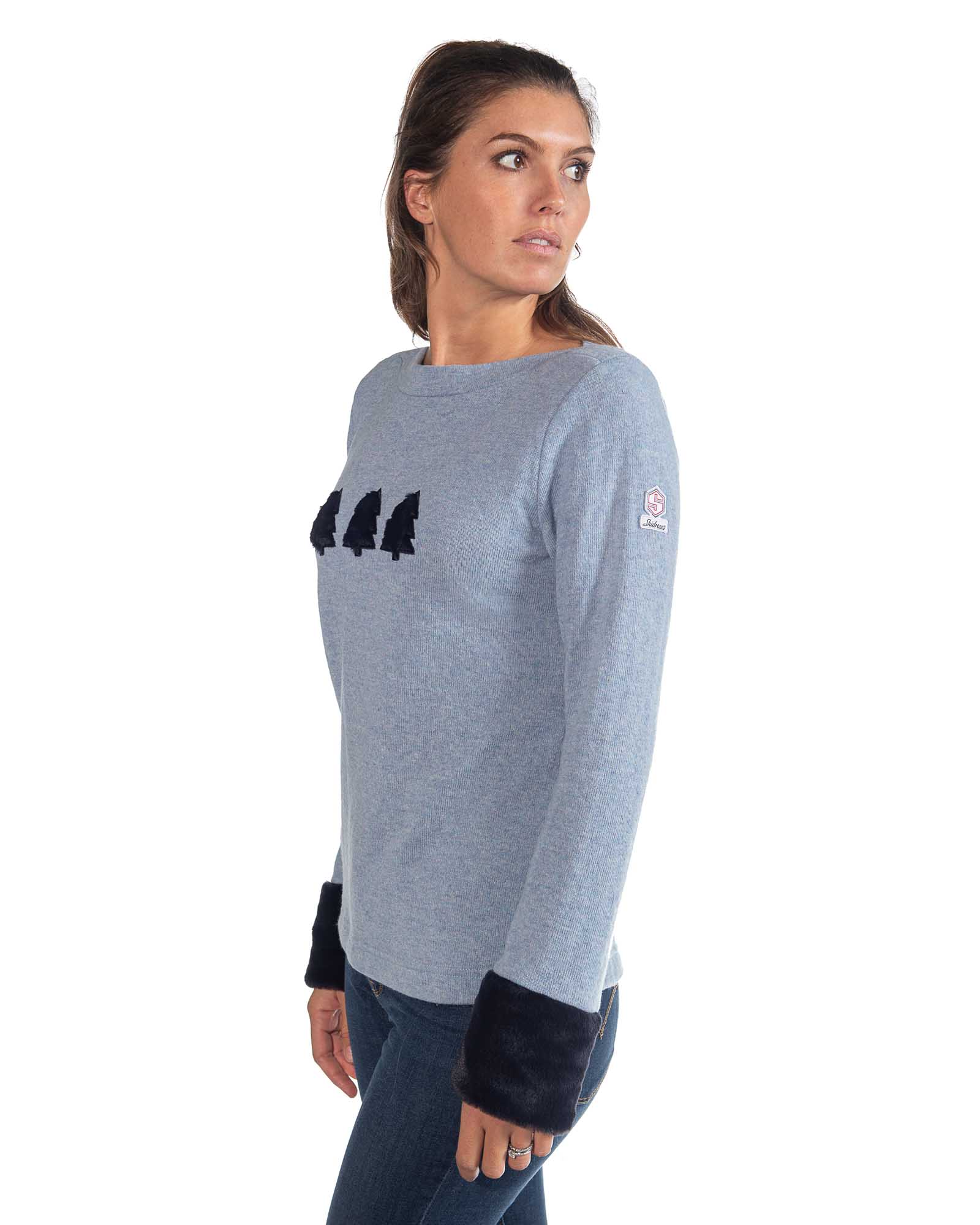 The Isabelle wool and fur jumper is a classic from Skidress. Designed to be worn in all seasons, it is perfect for creating a casual everyday look. The jumper is made from 70% recycled wool, making it an eco-friendly option for nature lovers. The combination of wool and faux fur gives the jumper an elegant and soft look. The faux fur fir patterns are a quirky detail that adds character to the jumper, while the faux fur muffs offer an extra touch of warmth for those colder days.