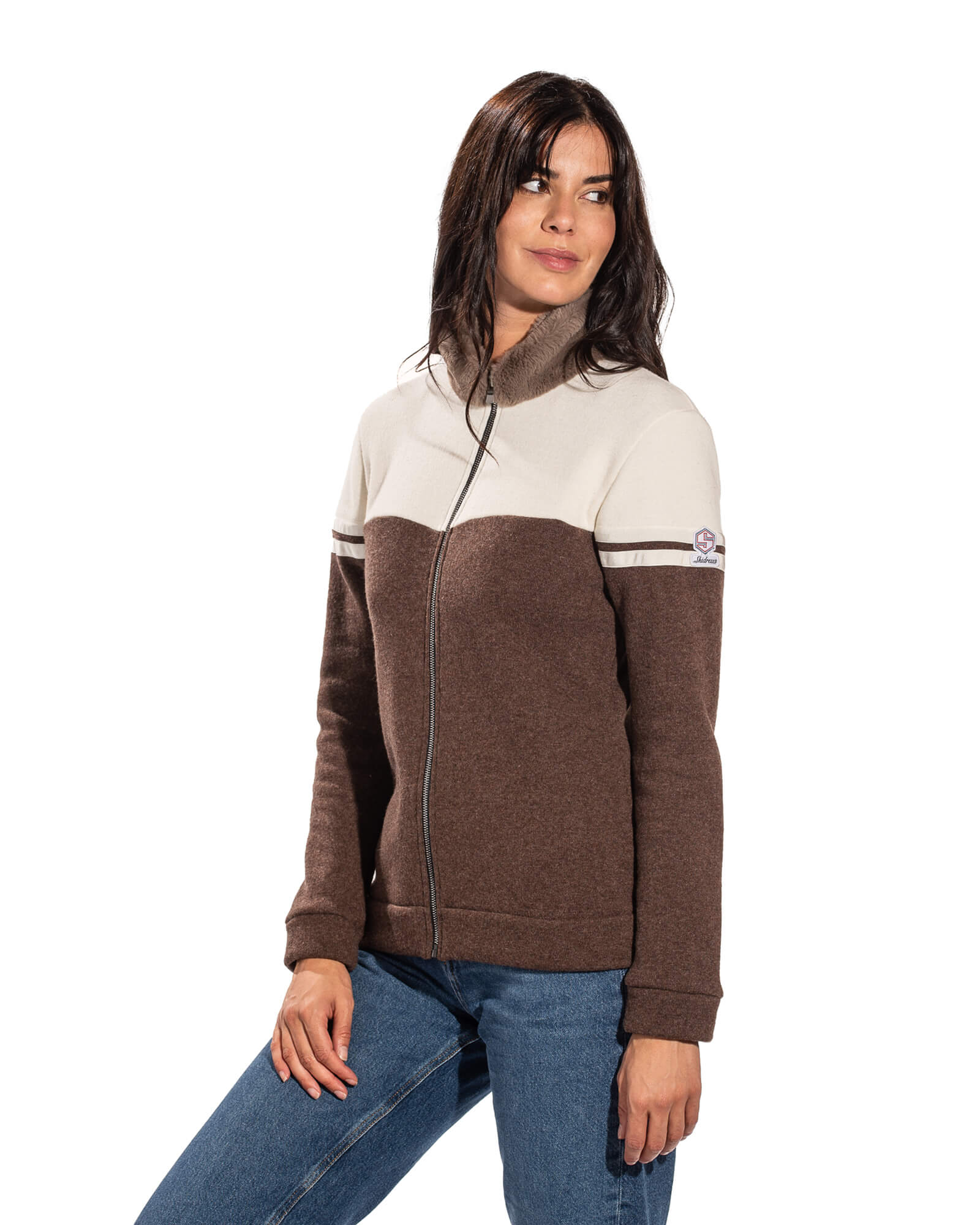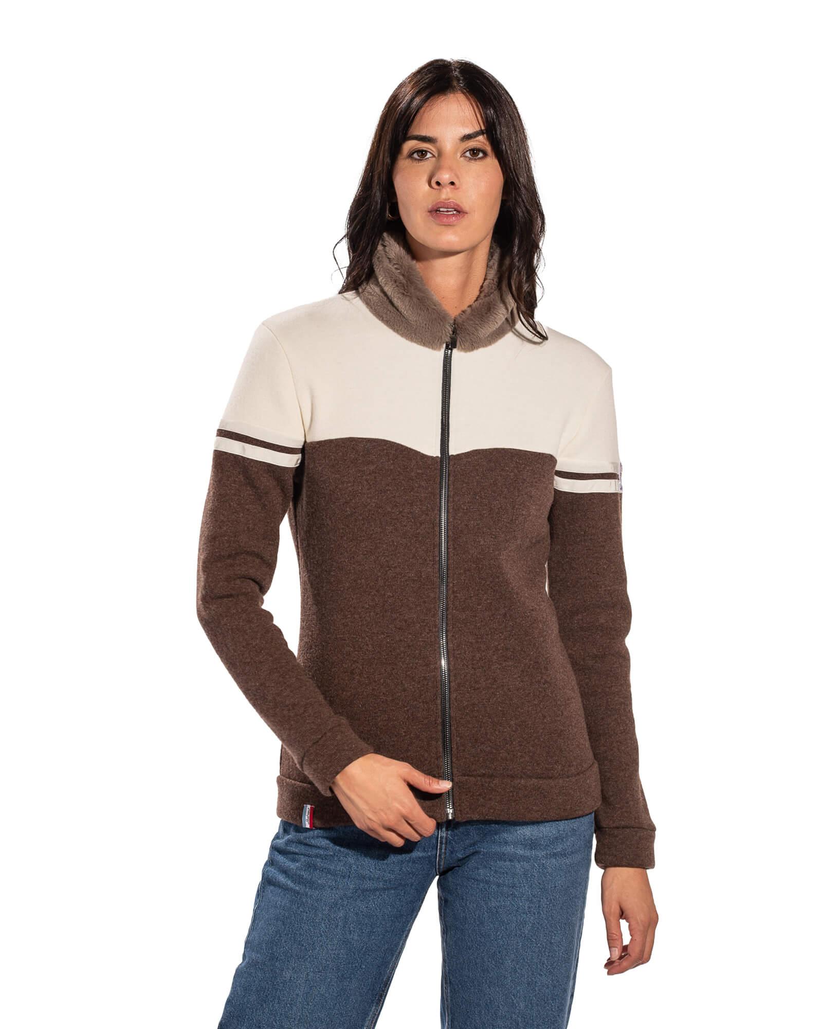 Two-tone wool and faux fur jacket