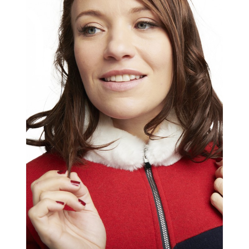 Full-zip jacket with faux fur collar. Biceps double stripes.