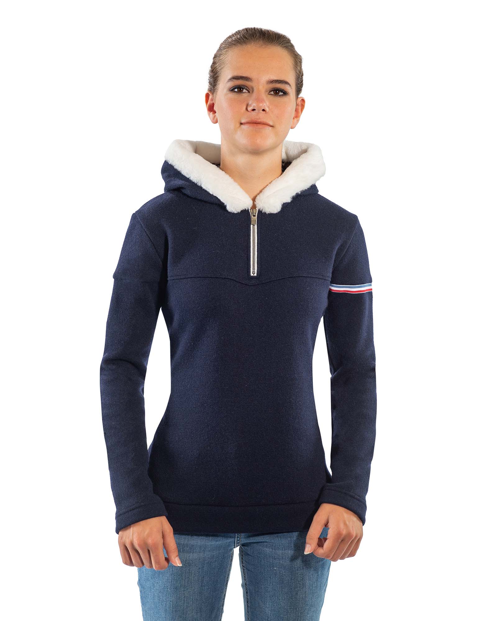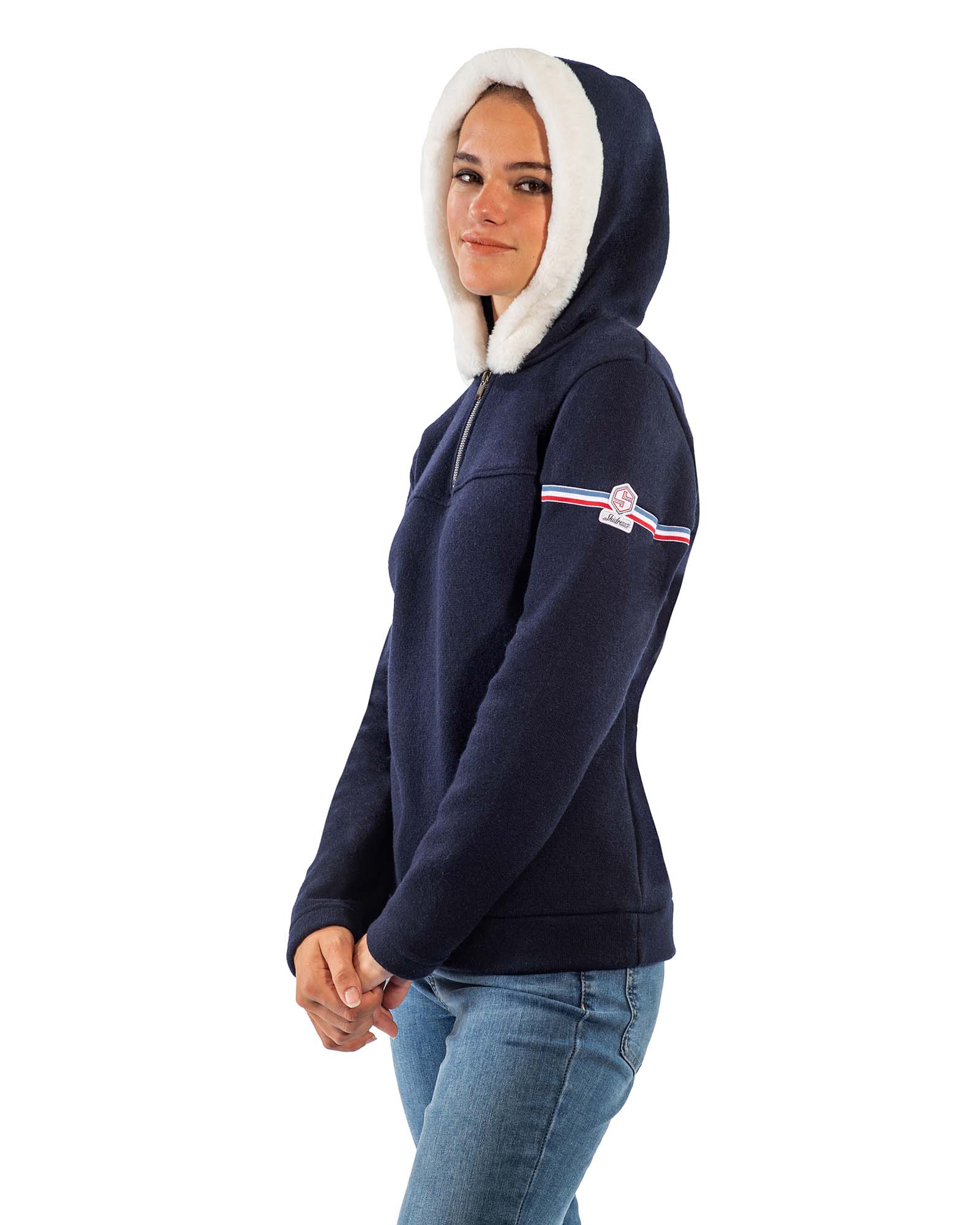 Le design du pull à capuche demi-zip Claire est à la fois moderne et fonctionnel. Le demi-zip à l’avant facilite l’habillage et le déshabillage tandis que les poignets assurent une tenue ajustée pour garder la chaleur à l’intérieur du pull.